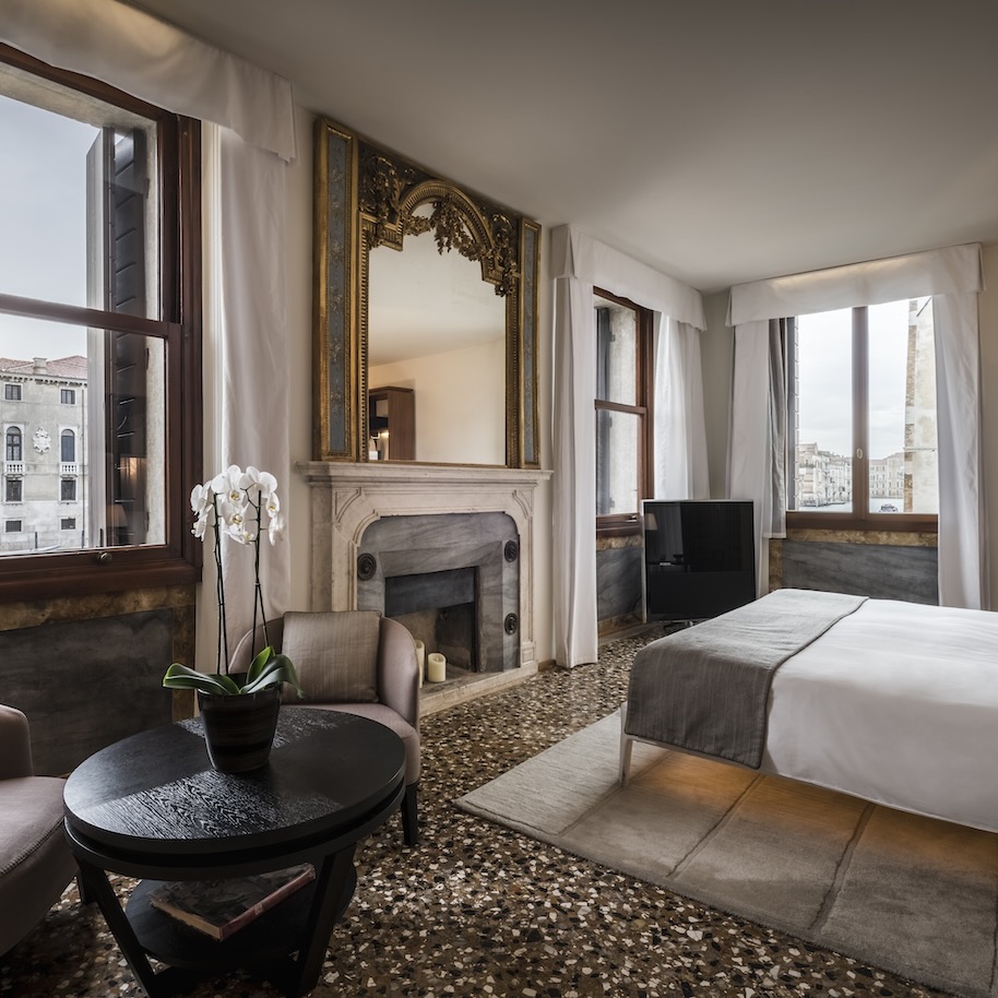 Gäste gelangen per Boot zum Aman Venice. Empfangen werden sie in der monumentalen Eingangshalle des Palazzo Papadopoli zwischen Fresken und historischen Reliefs. Die historische Substanz wurde behutsam restauriert, originale Werke von Giovanni Battista Tiepolo blieben bis heute erhalten. Die Zimmer und Suiten prägen bemalte Decken, Holzvertäfelungen und venezianische Kronleuchter. Viele von ihnen eröffnen einen unmittelbaren Blick auf den Canal Grande.