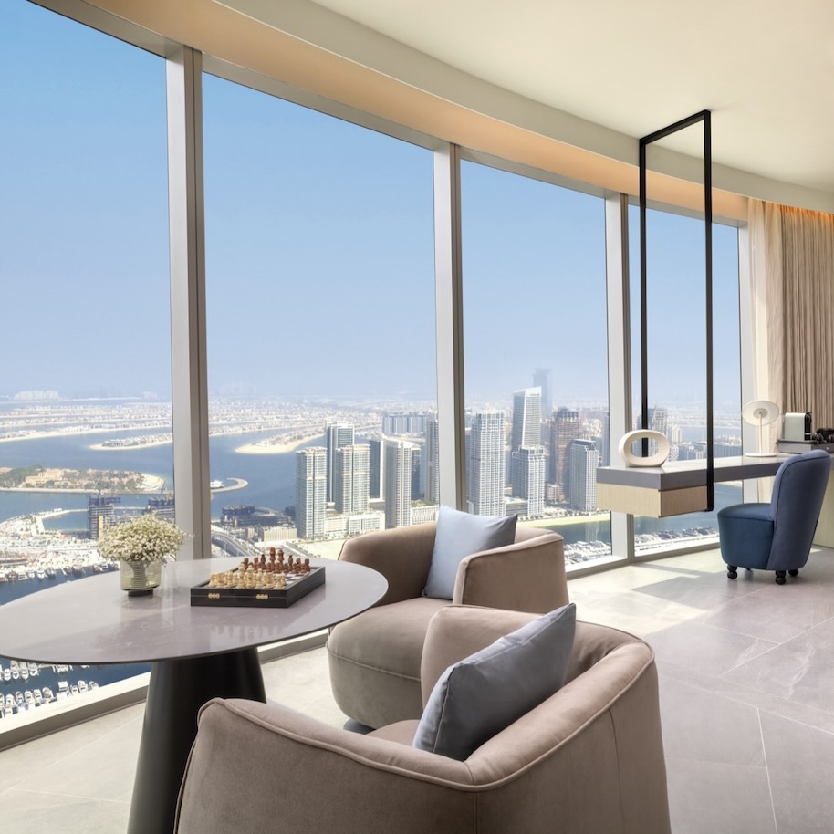 Ab Februar 2026 können sich Gäste überdies im Spa auf Ebene 61 verwöhnen lassen. Moderne Schönheitsrituale treffen dann auf altehrwürdige Traditionen. Der zusätzliche hochmoderne 24-Stunden-Fitnessraum verfügt über einen inspirierenden Blick auf die Skyline für ein energiegeladenes Training sowie über direkten Zugang zum Soluna Beach Club auf Palm Jumeirah.