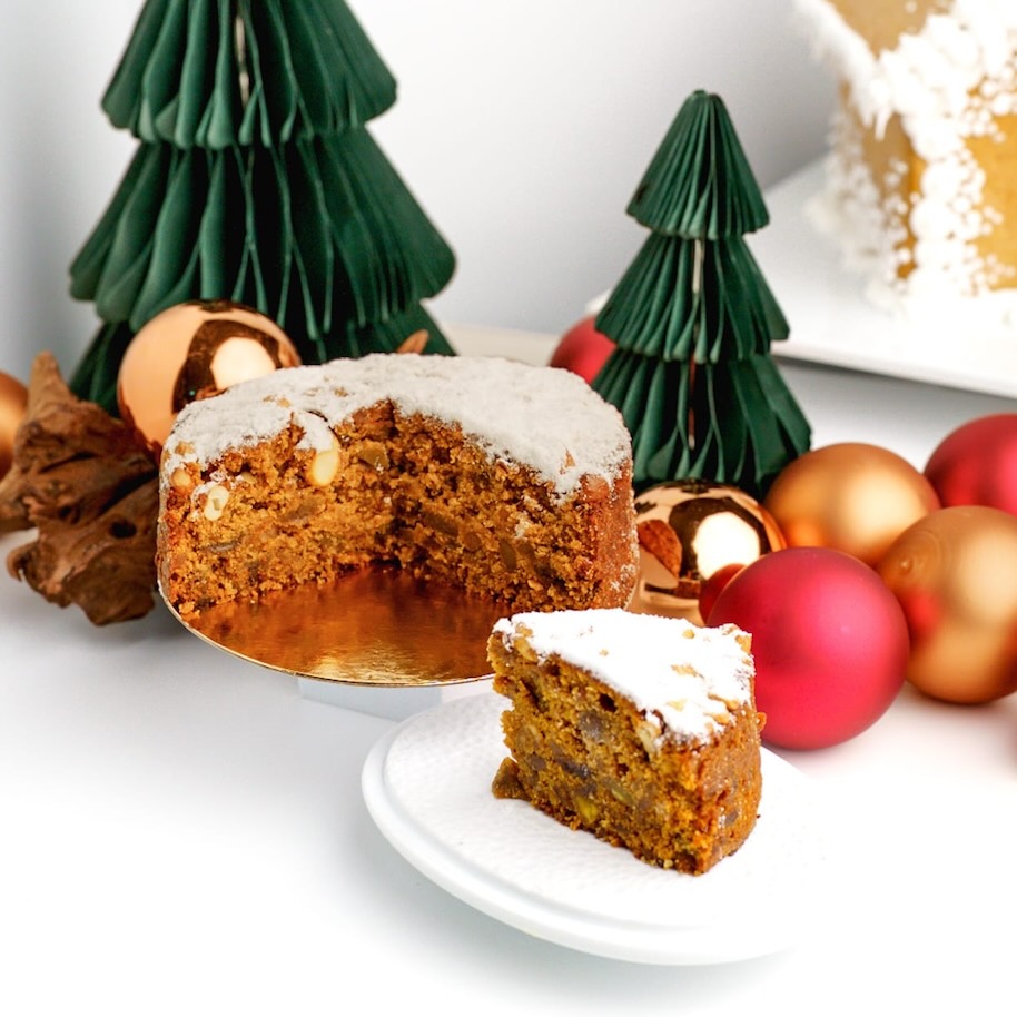 Aromatische Trockenfrüchte, wärmende winterliche Gewürze und eine feine, butterige Textur verbinden sich in einem Kuchen, der nicht nur geschmacklich überzeugt, sondern auch optisch den Zauber der Festtage einfängt. Er eignet sich hervorragend dafür, die Feiertage stilvoll zu zelebrieren und einen Moment festlicher Eleganz zu genießen.
