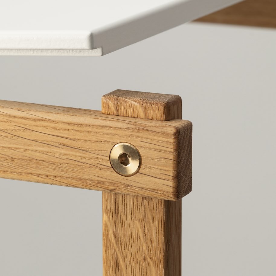 Andererseits rechtfertigt es die Geste des selbstbewussten Zeigens sämtlicher Verbindungen und Befestigungen – darunter die Messing-Schraubenmuttern als kleine glänzende Details –, hier von funktionaler Ornamentik zu sprechen. Hermanruds Entscheidungen unterscheiden Frame klar von noch schlichteren Produkten, wie sie beispielsweise Vier-Buchstaben-Konzerne heute in Hülle und Fülle bieten.