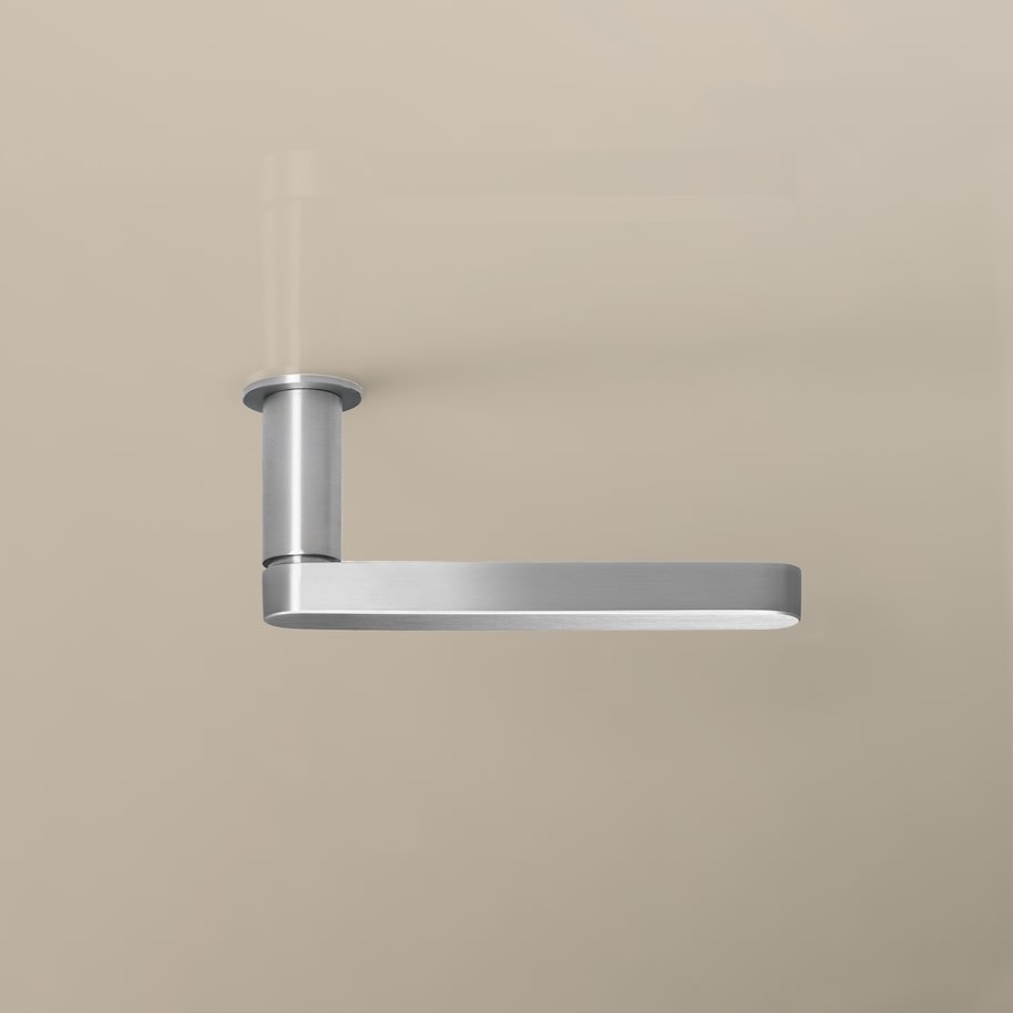 Mit den Worten „Architektur en miniature“ betitelt HEWI seine Türdrücker-Serie 270. Die Stilikone wird charakterisiert durch auffallend hohe Präzision und Wertigkeit. Zudem verbindet sie eine sachliche Linienführung mit einer insgesamt handschmeichlerischen, eleganten Form. Der verantwortliche Baukünstler respektive Designer Hadi Teherani spricht von Gestaltung und Technik in perfekter Balance. Er streicht feine Details wie die Fuge zwischen dem Ansatz des Drückers und dem Griff ebenso heraus wie die umlaufende Kante. Der Entwurf würde hierdurch an Komplexität gewinnen – und dennoch durch Klarheit überzeugen.
