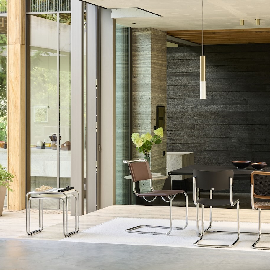 Über Thonet müssen wir nicht viele Worte verlieren. Oft schon haben wir uns mit den Erzeugnissen des 1819 von Design- und Möbelpionier Michael Thonet gegründeten Unternehmens befasst. Die auf die besondere Nachhaltigkeit einzahlende visuelle und konstruktive Dauer stand dabei stets im Vordergrund, zudem bereichert ein Thonet-Design-Klassiker unsere Reihe Design für die Ewigkeit. Ebenso näherten wir uns auf der anderen Seite bereits dem Schachspiel aus dem Blickwinkel des Designs. Jetzt bringt ein von Thonet und der Schweizer Marke Naef präsentiertes Set aus zwei Satztischen und einem Schachspiel beides zusammen.