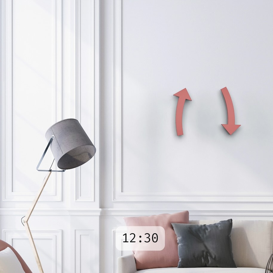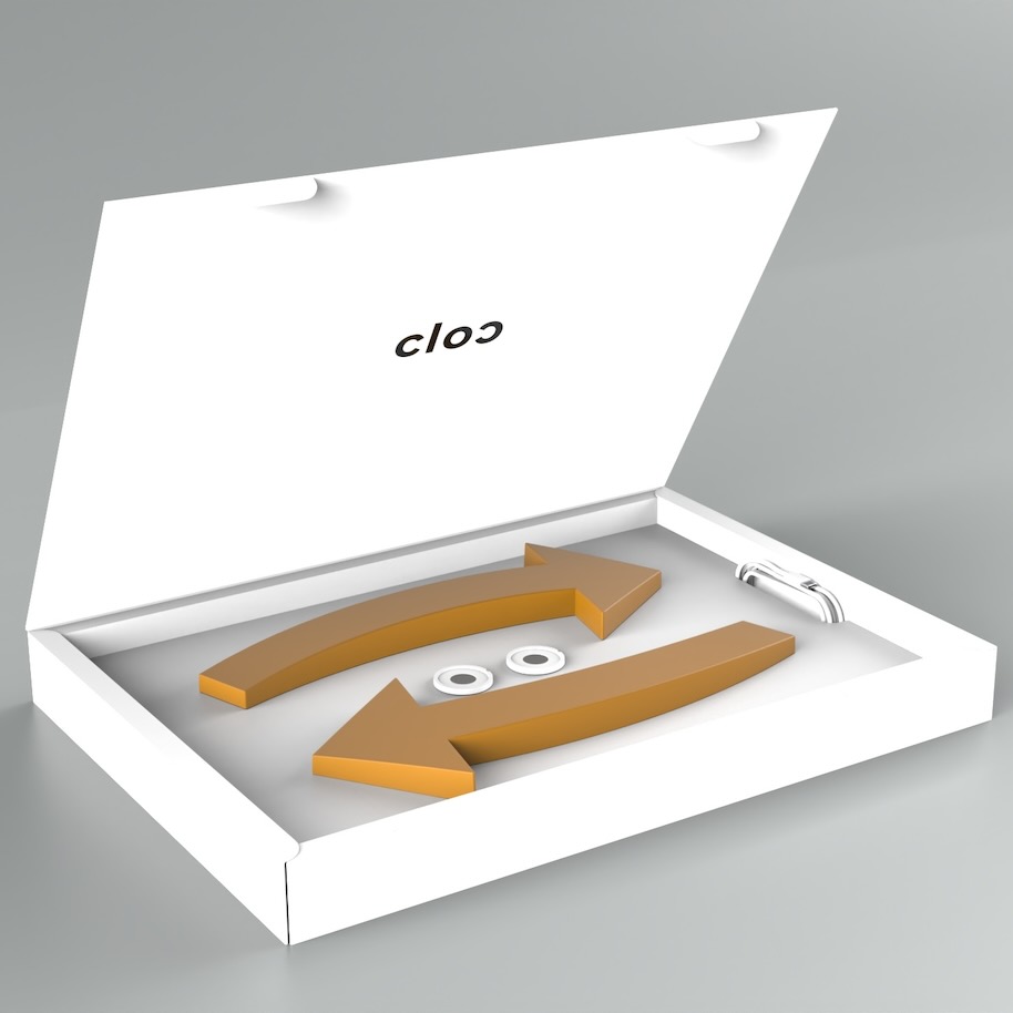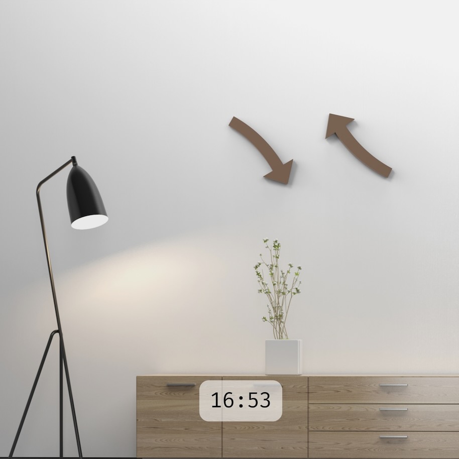 Drei Jahre zeichnete, fräste, bohrte und lötete Stefan Dassel in seiner Werkstatt nahe München. Dann endlich war seine Neuerfindung der Wanduhr mit Namen Cloc serienreif. Ihr besonderer Reiz liegt im betont reduktionistischen Ansatz. Es handelt sich lediglich um zwei geschwungene Pfeile als Stunden- und Minutenzeiger, die getrennt voneinander – mithilfe unsichtbarer Halter – befestigt werden. Gestisch gesehen ist Dassels Uhr dennoch komplex und raumgreifend.